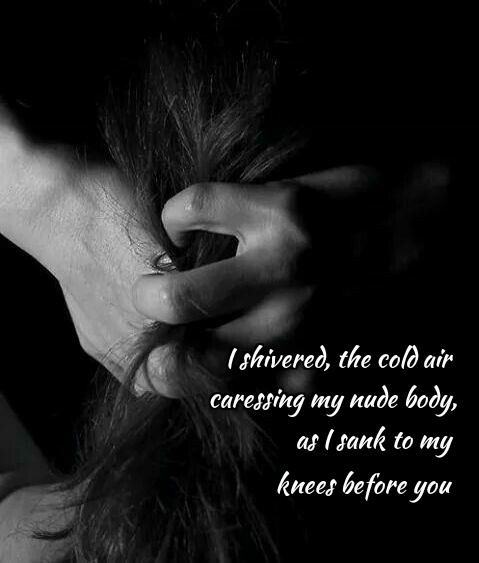 I shivered the cold air caressing my nude body, as I sank to my knees before you.